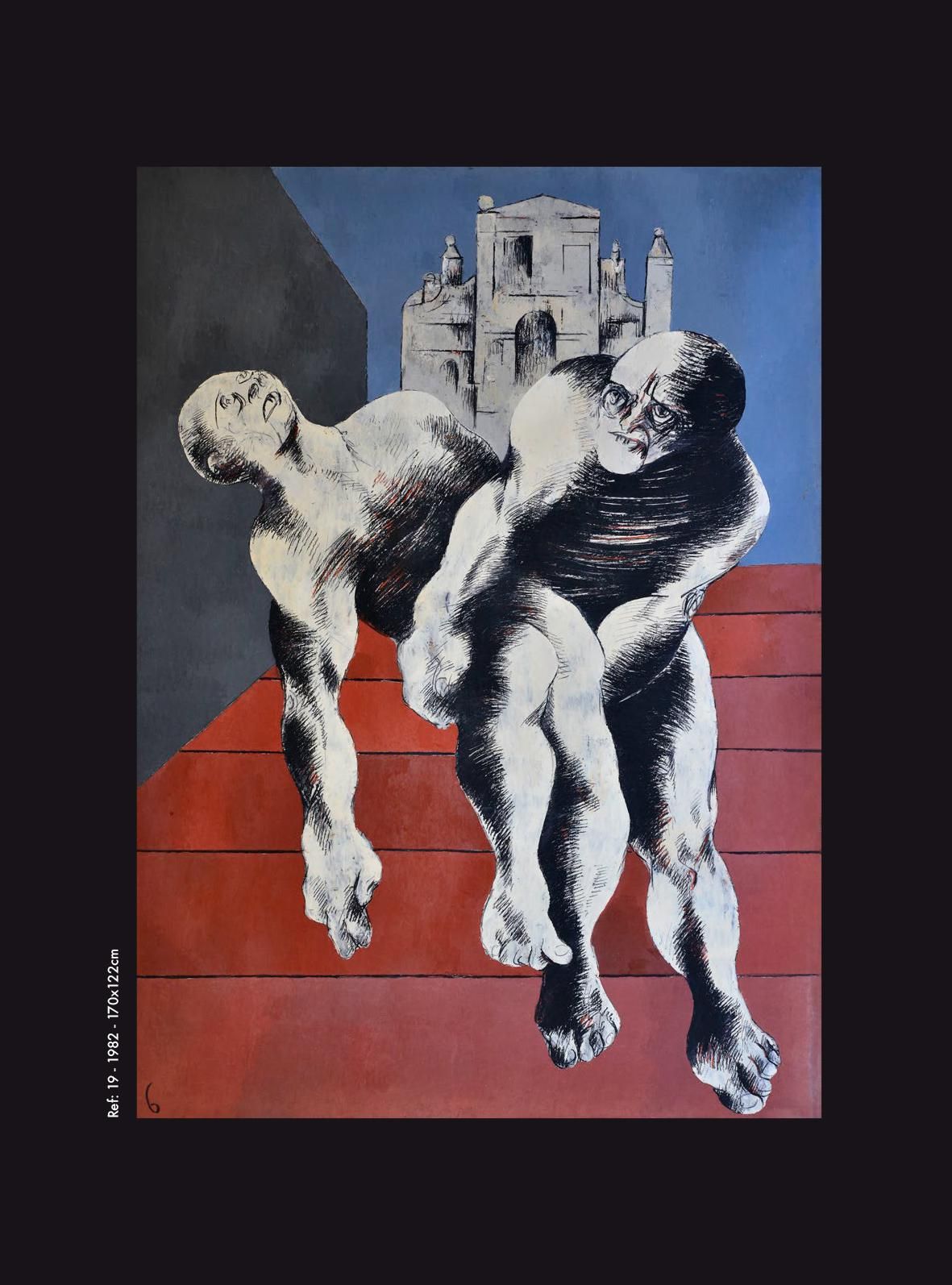 Tel l'Adam s'élévant du sol avant que l'Âme lui soit insufflée. Grand applats subtilement colorés s'ouvrant sur de belles constructions rigoureuses.
